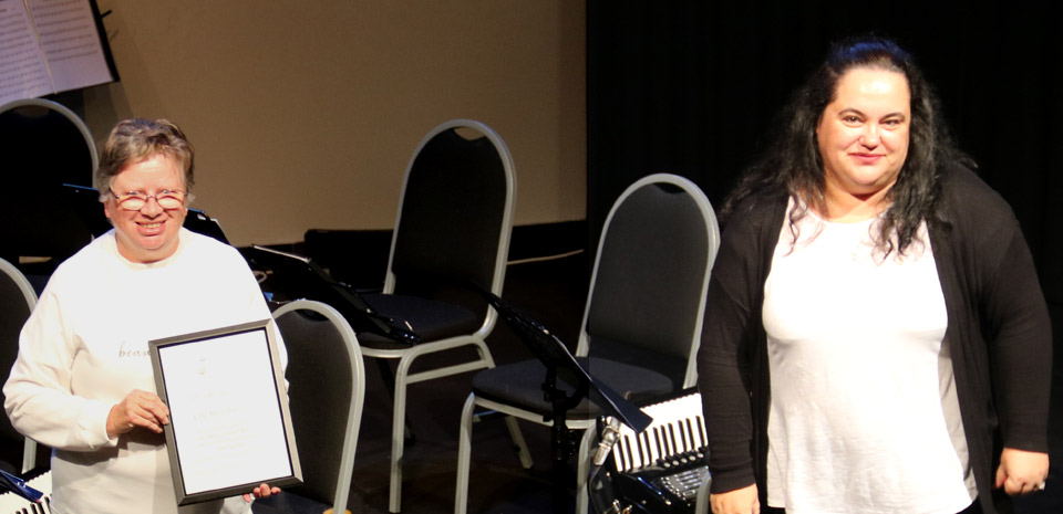 On behalf of the NZAA, I would like to publicly thank Megan for her years of Dedicated Service to the Accordion in New Zealand and award her Life Membership of the NZAA.